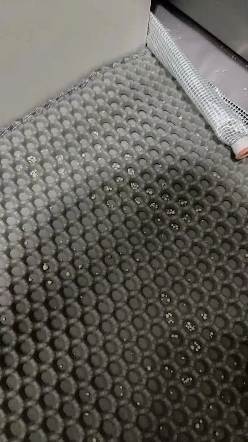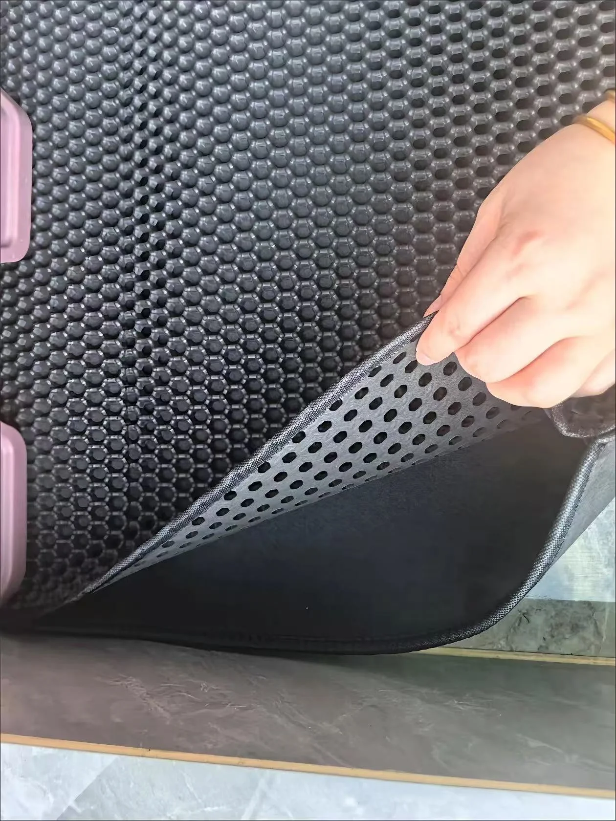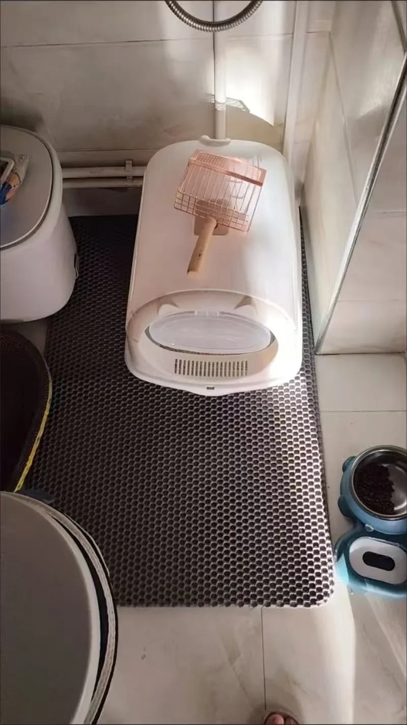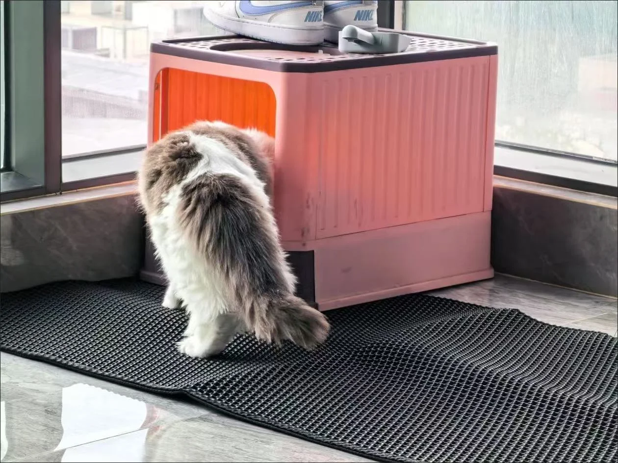 Ce tapis de litière pour chat avec design alvéoles retient efficacement les grains de litière et protège votre maison.